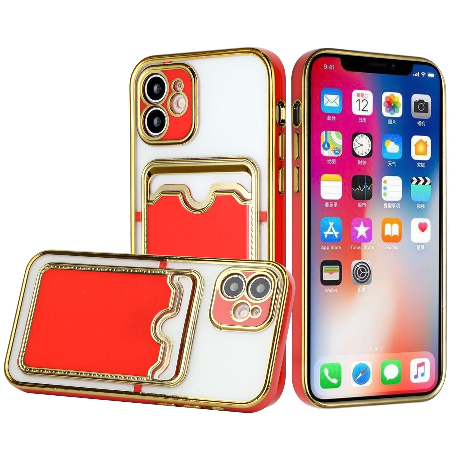 For Iphone 12 Dual Camera Punch Electroplated Card Holder High Quality Hybrid Case Cover Red Walmart Com