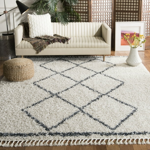 Safavieh Pro Luxe Shag Subinka Moroccan Tassel 2 4 Inch Thick Rug Cream Blue 9 X 12 9 X 12 Indoor Blue Rectangle Walmart Com
