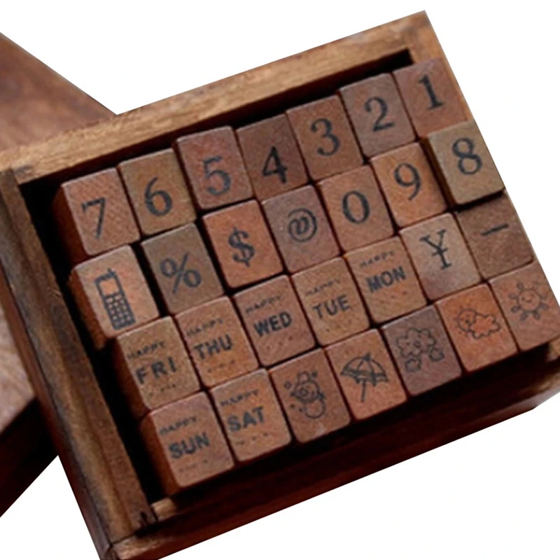 Wooden Rubber Number Stamps 28 Pcs Vintage Wooden Rubber Number Week Weather And Symbols For Crafts Card Making Painting Aliexpress